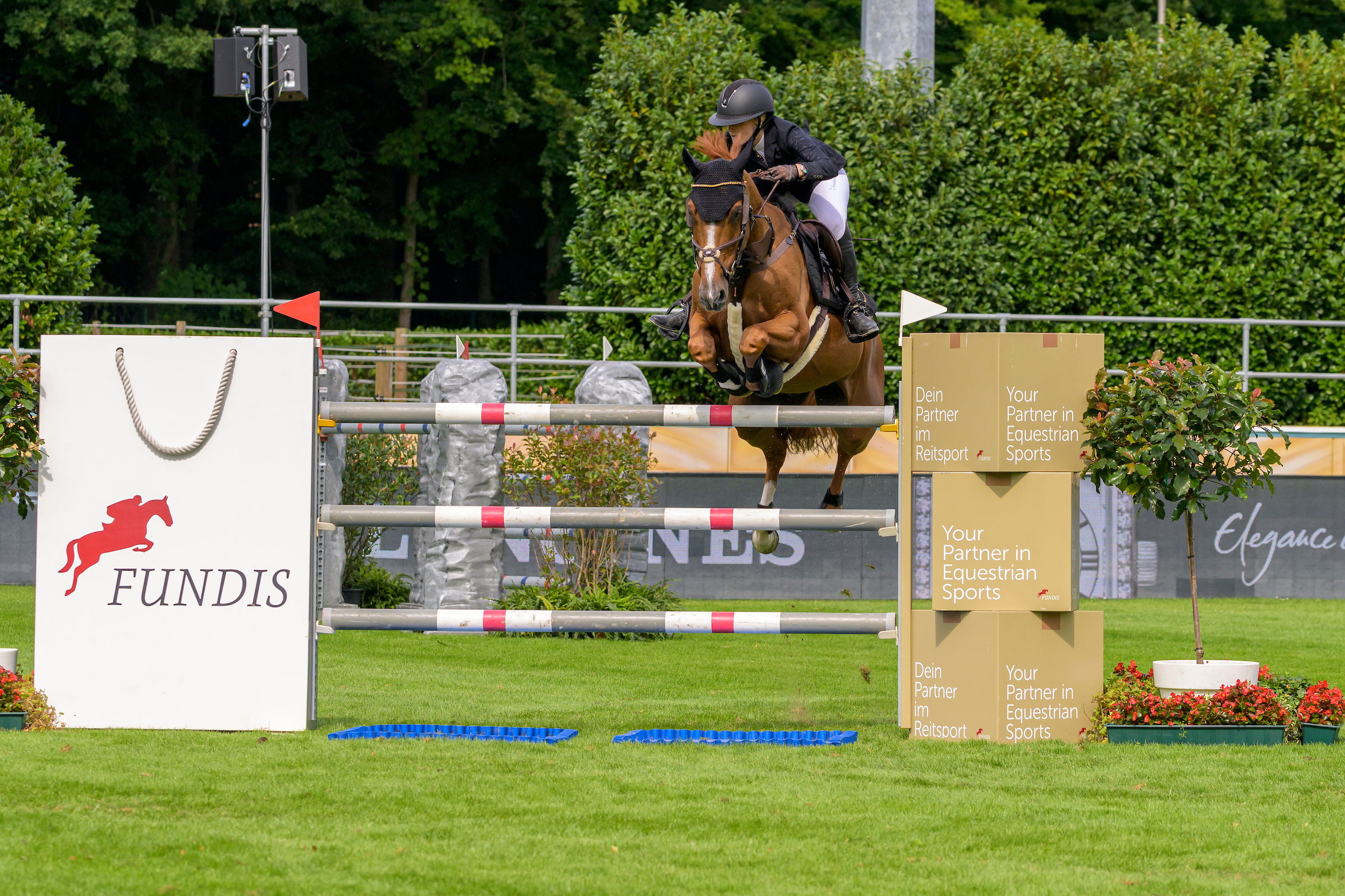Nicola Pohl setzte sich in der zweiten CSI5* Prüfung des Tages für ihr Heimatland Deutschland an die Spitze des Preis von FUNDIS Reitsport. Mit ihrem Erfolgspferd Arlo de Blondel aus französischer Zucht nahm sie dem Zweitplatzierten Pius Schwizer (SUI) und Chelsea Z fast zwei Sekunden ab. Selbst ein kleiner Sturz im Warm-up verunsicherte das eingespielte Paar nicht, sie betraten den Rasenplatz mit dem Vorsatz zu gewinnen and flogen in 64.96 Sekunden fehlerfrei über den 1.45m Parcours des Fehler/Zeit Springens. "Ich bin super glücklich über diesen Sieg und darüber, das Wochenende so zu beginnen,“ strahlte Pohl. “Arlo und ich verfügen beide über viel Erfahrung und ich kenne ihn in- und auswendig. Der Sturz war mein Fehler und danach haben wir einfach unser Ding durchgezogen.” Die Reiterin aus Hessen lobte auch das Veranstalterteam: “Ich bin zum zweiten Mal hier in Riesenbeck, das letzte Mal war vor sechs Jahren. Es hat sich unglaublich viel verändert, Glückwunsch an Ludger und das Team. Die vielen kleinen Details sind einfach unglaublich.” Platz drei in 67.25 Sekunden ging abermals an den Belgier Jérôme Guery, diesmal im Sattel von Great Britain V, ganz knapp vor Landsmann Abdel Saïd auf Etincelle d’Ellipse.