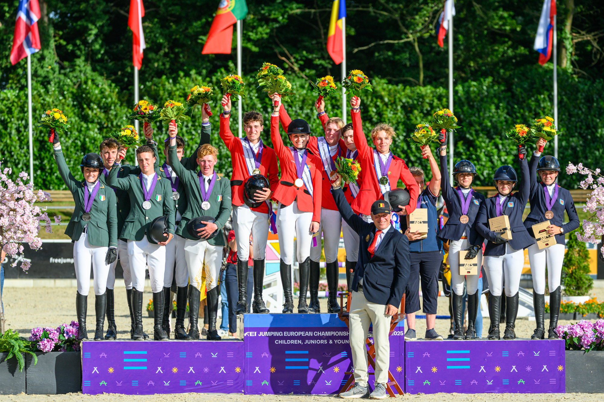 Man konnte eine Stecknadel zu Boden fallen hören in Riesenbeck als der Schlussreiter für Belgien, Leon Brutsaert mit Corleone Tour Vidal in das Sandstadion einritt. Zwei Strafpunkte für die Zeit dürfte er sich erlauben, mit nur einer einzelnen Strafsekunde kam das Paar ins Ziel. Damit wurde es Gold für die Junge Reiter Mannschaft aus Belgien und ihren Chef d’Equipe Filip Lacus. Die Silbermedaille ging an Irland. Die Britin Rachel Proudley sicherte mit einer Nullrunde auf Quality Street den Bronzerang für Großbritannien.