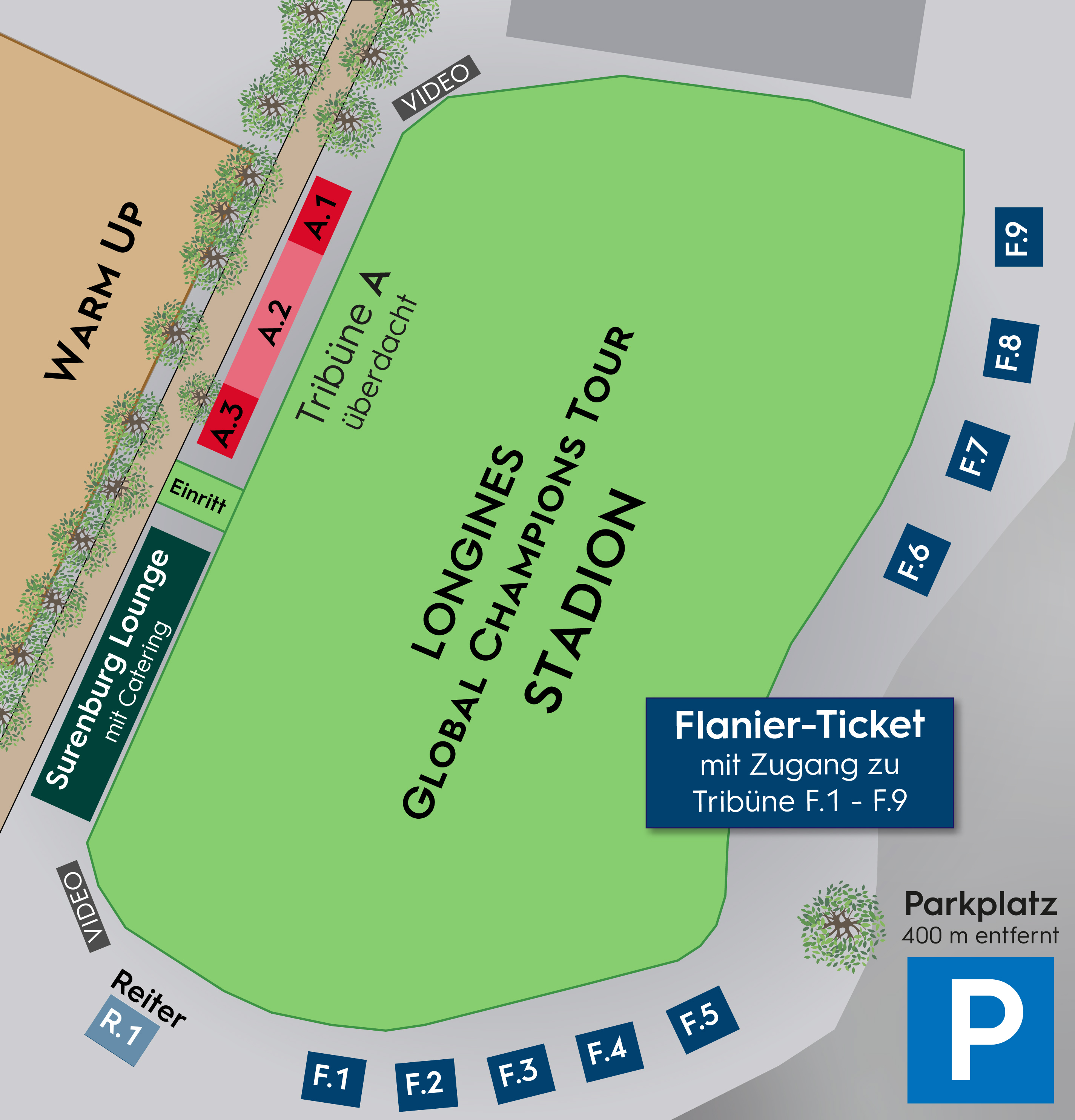 You can choose between day tickets for Saturday or Sunday or a season ticket for the whole weekend (Fri - Sun). The Surenburg Lounge is open for you on Saturday and Sunday, with a season ticket you can of course secure your seat from Friday to Sunday.